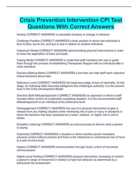 Download Crisis Prevention Intervention Test Answers Reader By Click Button. Crisis Prevention Intervention Test Answers it’s easy to recommend a new book category such as Novel, journal, comic, magazin, ect. You see it and you just know that the designer is also an author and understands the challenges involved with having a good book. You can easy klick for detailing book and you can read it online, even you can download it